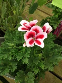 ペラルゴニューム・ストロベリークリーム名前の通り、イチゴ色と、クリーム色の2色咲きの品種です。