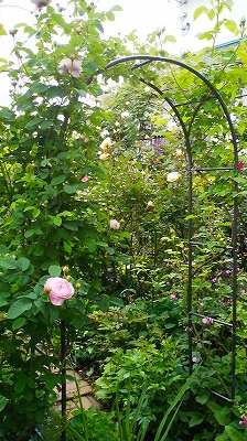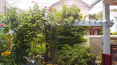 デッキ脇のアーチの下には、ヒューケラがドーンと! 2−3年ものだそうです。