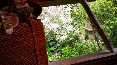 デッキでは、花を眺めながらお茶できます。いいですねぇ〜。
