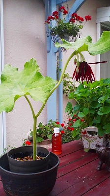 2階のゼラニューム、すごい真っ赤です。