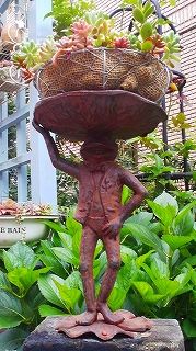 蛇口の上には、見覚えのあるカエル氏。多肉植物を頭に乗せています。